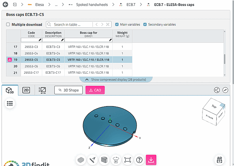 -> The search parameters are displayed in the search field (here Elesa and the color "dark green").