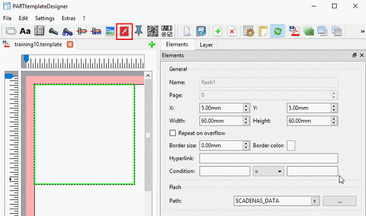 For Flash there is no preview generation possible in the template. In order to test simply create a PDF .