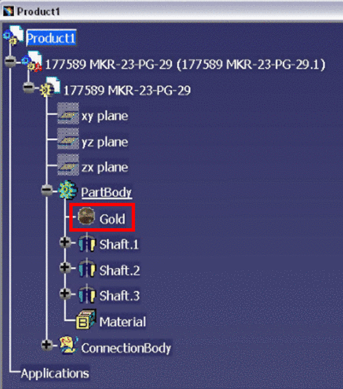 \\Catalog.CATMaterial")Name of the material from the MaterialFile, read from the part physical properties.