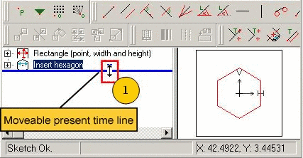 • With the help of a movable marking (time line) (per default at the bottom of the tree) you can always return to a previous design step.