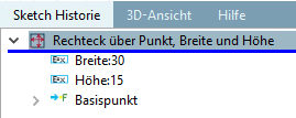 • All design steps are chronologically recorded in the docking window Sketch history. The most recent step is at the bottom.