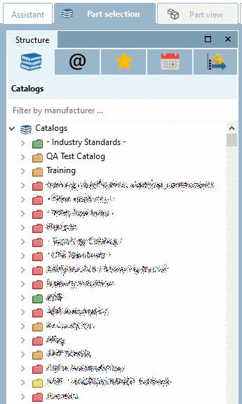 Directories and projects in the catalog index are colored in green or semi-transparent according to the condition under Display condition for parts selection.[63] Green means that at least one row in a project meets the condition under CONDITIONTREE or Display condition for parts selection. Green is transferred to the top (on all hierarchically higher directories). Semi-transparent means that no row of any project meets the condition.