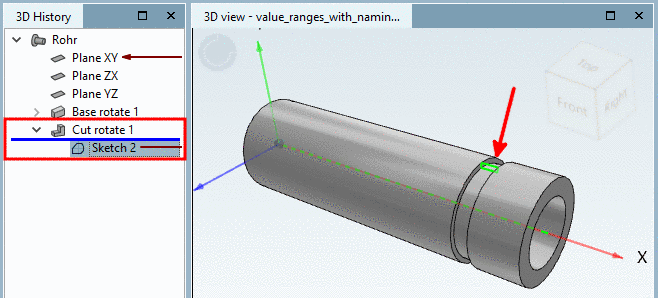 In the third step the cutting sketch gets a respective Condition, which creates the cut depending on the value of the variable FORM.