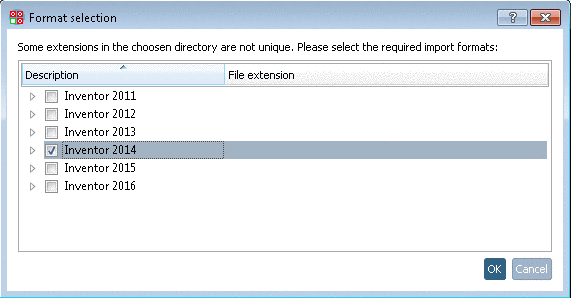 -> The import process has been started now and the dialog box Import options for format <CAD system> is displayed. If needed, adjust the settings and confirm with .