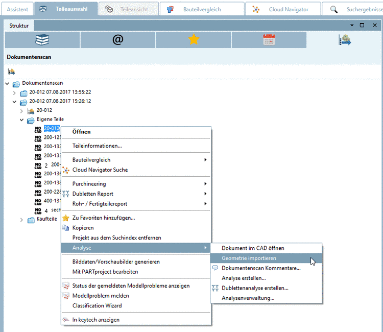 Before performing analyses like Make or Buy, for example on the base of the document scan, you can fill the newly created directories, so that further parts are included in the analyses.