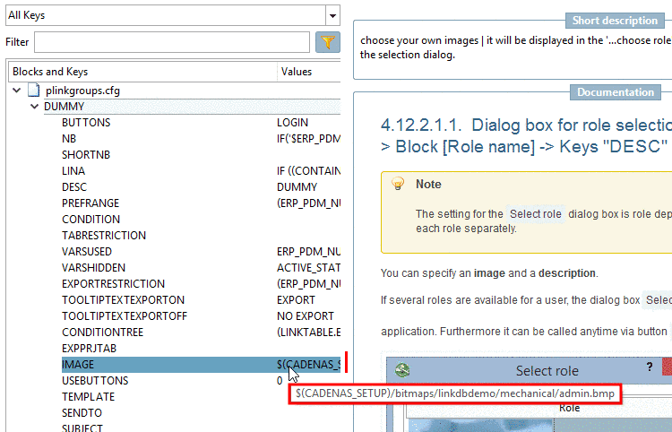 In the dialog area Short description you can find basic information on the currently selected block or key.