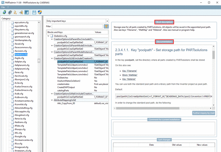 $CADENAS_SITESETUP/configEditorUserIo.xml.[30]In the dialog area Last changes the last value changes of the currently selected key are listed with their date.