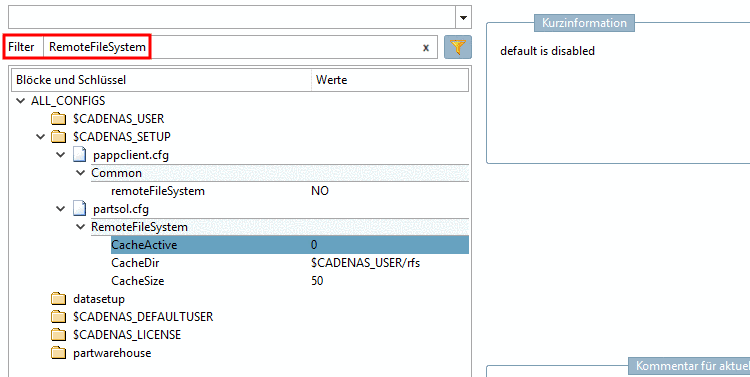 %CADENAS_SETUP%/partsol.cfg-> block[RemoteFileSystem]-> keyCacheActiveset the value to 1.[RemoteFileSystem] CacheActive= 0 oder 1 CacheDir=$CADENAS_USER/rfs CacheSize=50