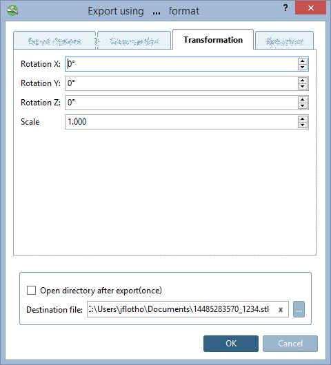 On the tabbed page Transformation, you can adjust the axis orientation and scaling for the exported part.