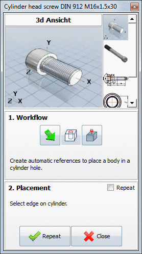 Part depiction in plastic 3D preview. The three-dimensional effect only takes place when using red-cyan glasses! The chosen part is depicted aligning in order to raise the plastic effect. The background is automatically dimmed. The option red/cyan effect can be used independently of the depiction mode (Lines, Hidden lines, Shaded, etc.). |