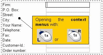 Area fields each combine individual fields with a border (example: address header, see illustration at right).