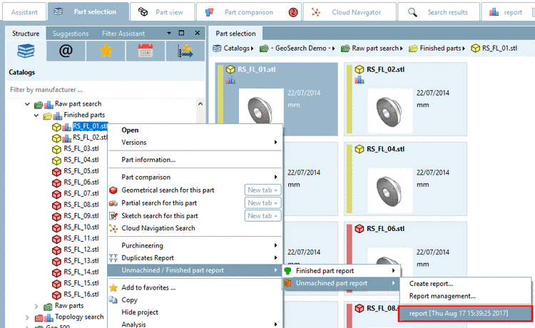 3.1.13.3.6.  Unmachined / Finished part report: Open existing reports