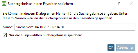 Save search results in favorites:-> The same named dialog box opens. A name (date per default) is already entered. You can change this entry.