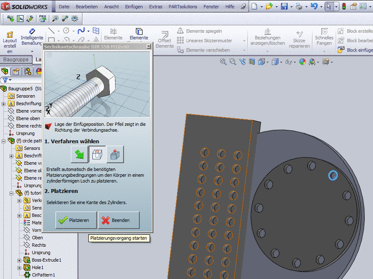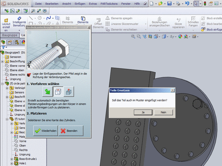 placed and the dialog box opens with the question "Create a pattern of this part based on the existing pattern?".