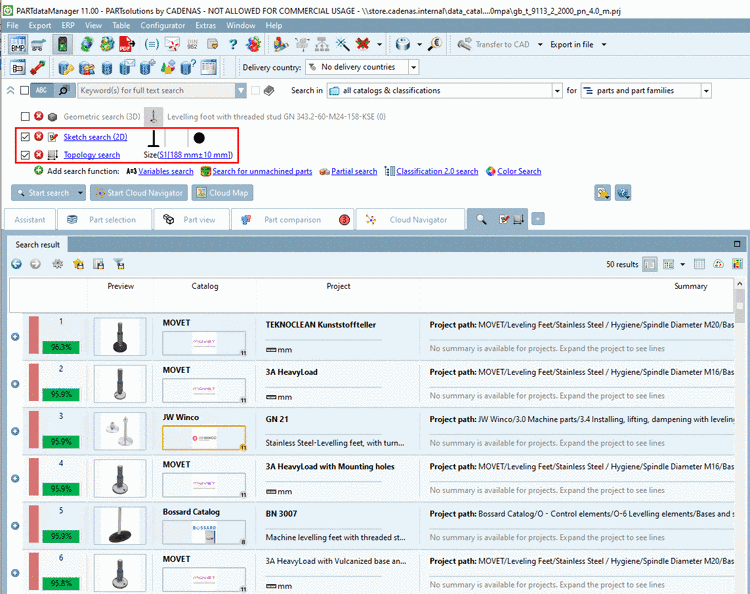Also the Sketch search (2D) (a little bit more "fuzzy" than the Geometric Search (3D) - which does not need to be a disadvantage) delivers very good results in combination with the Topology search.