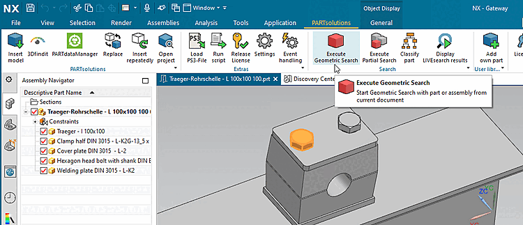1. In CAD, select the desired part for which you want to perform the geometric search.