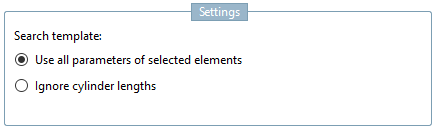 Ignore cylinder lengths: If, for example, a matching counterpart is being searched for a hole or a pin, it may be advantageous not to include the "length" attribute for the search. In such a case, use the Ignore [Ignore cylinder lengths] cylinder lengths search template.