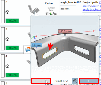 The partial search [Partial search] is a geometric search, but here you do not select components as a reference for the search, but individual features such as planes, cylinders, etc. and use them to find all components that contain these features. The geometric arrangement of the features is also used for the search.[64]