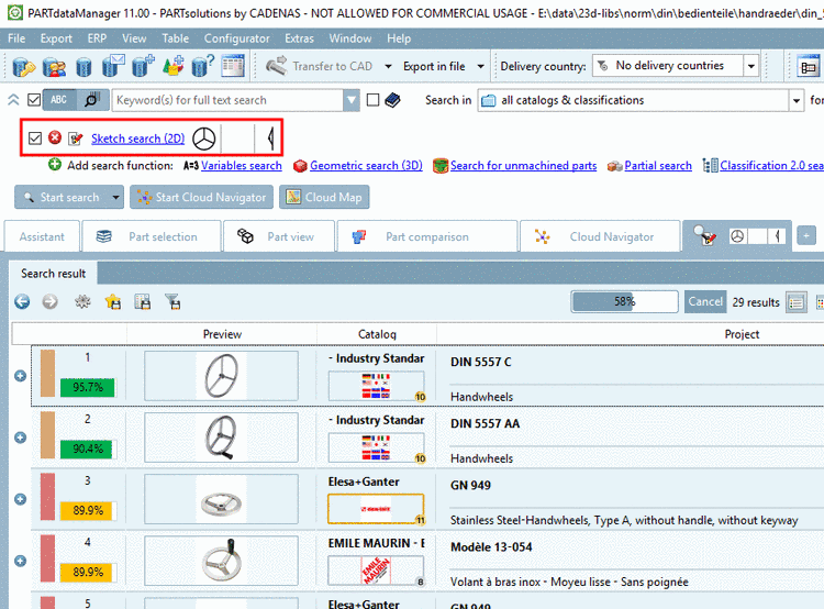 The Sketch search (2D) is useful when there is no reference part available for a Geometric search (3D). In a second step you can possibly perform a Geometric search (3D).