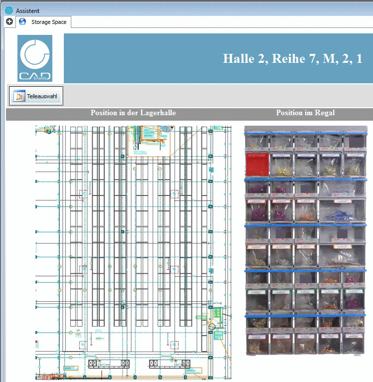 For every part sketches and pictures can be displayed in order to show the exact position in the stock and rack.