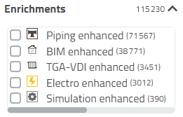 The figure exemplarily shows the results for "Filter search across all catalogs".When using the option "Filter search across all catalogs" the results during the first loading are completely unspecific, however, depend on the setting under $CADENAS_SETUP/partsol.cfg > FULLTEXTSEARCH > SimilarityFactor. By default, the Standards catalog is prioritized.