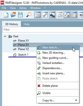 If you want to create a new Sketch for a part, do the following: