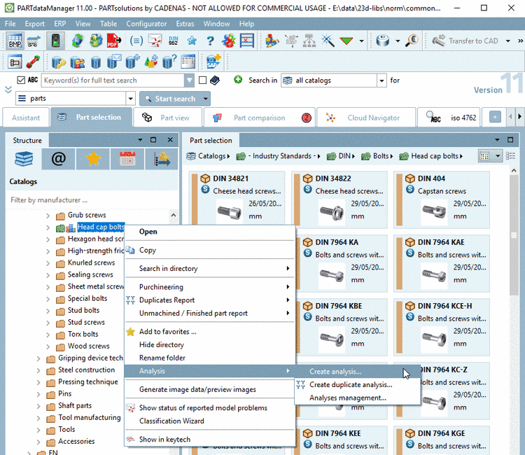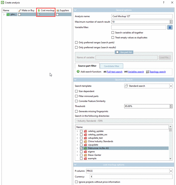 If prices of similar (exchangeable) parts in different supplier catalogs shall be compared, select the Cost Mockup analysis.