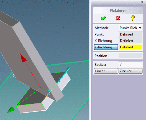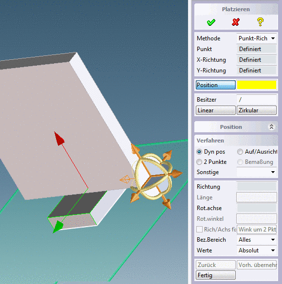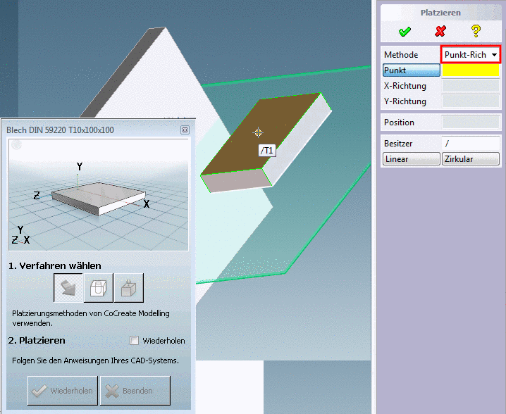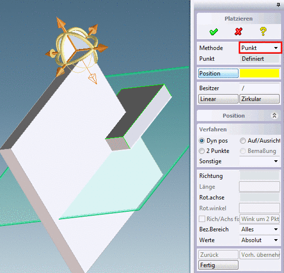 -> After you have chosen a placement method, the CoCreate Modeling placement dialog opens.