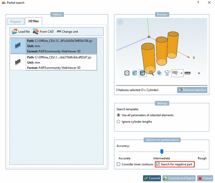 Partial search.In this example, enable the option Search for negative part. Default for Accuracy is Medium, if necessary change to Accurate or Rough.