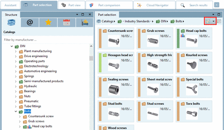 On the right, in the Part selection, now elements of the next deeper level are displayed.