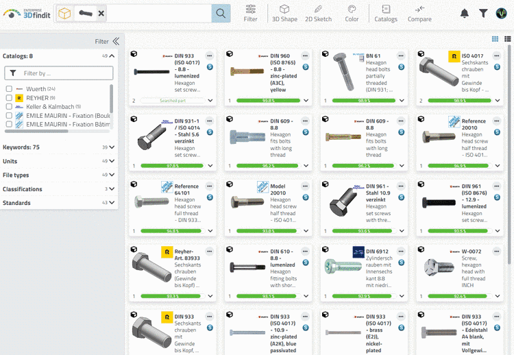 -> Results within the set similarity are found and displayed.