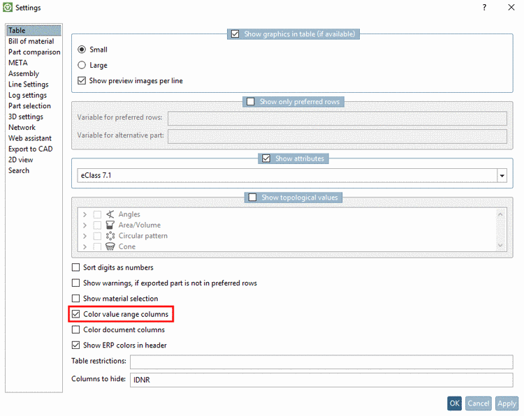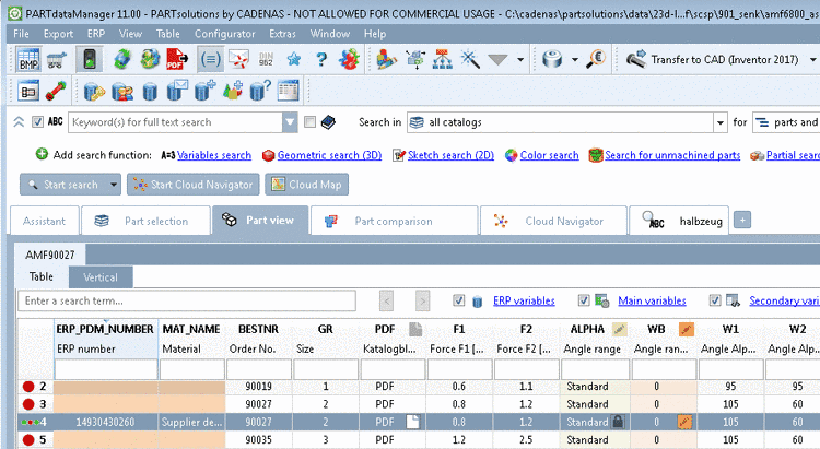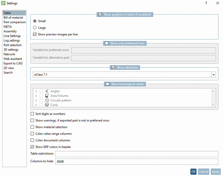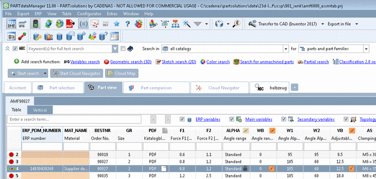Variable for alternative part: If you set a checkmark here the part, which is closest to the preferred part in the table, will be transferred to the CAD system as a meta file. This function is only supported by certain CAD systems.