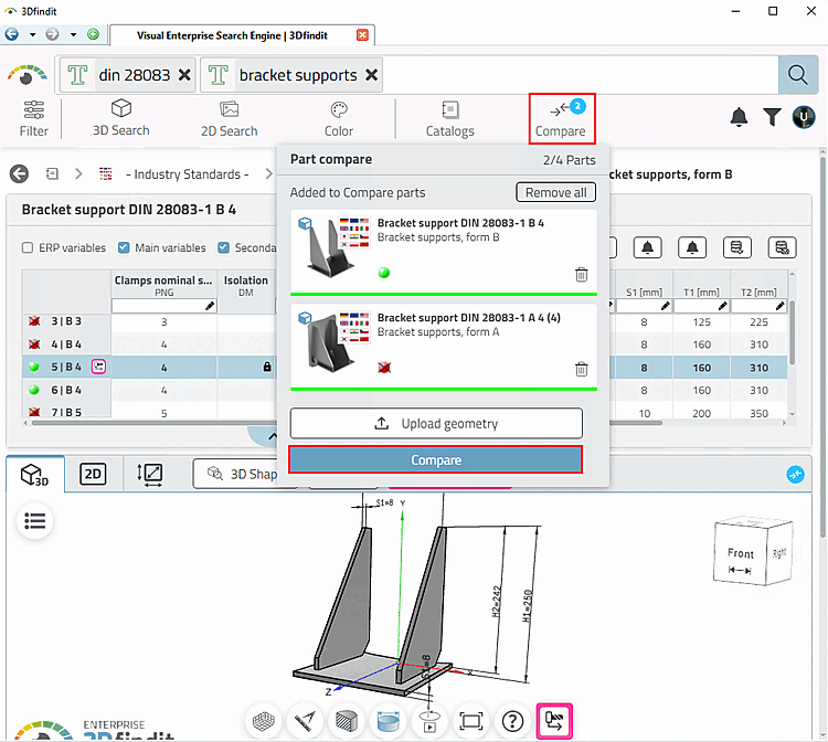 In the comparison [Compare], you can compare product parameters in tabular form and also examine products in detail in 3D.
