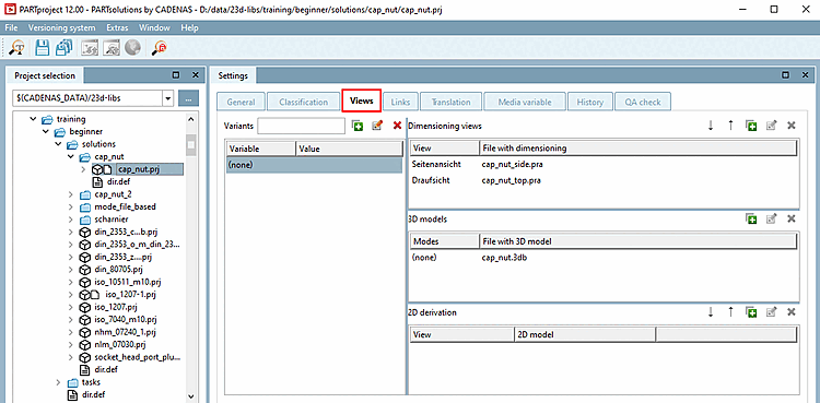 • Assignment of dimensioning views: PARTproject -> Views tab page