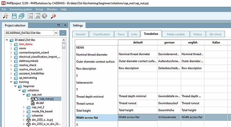 In PARTproject project files are created and the data associated with the component such as 3D object, table, preview images, dimension drawings, technical views and other additional information are integrated or created.