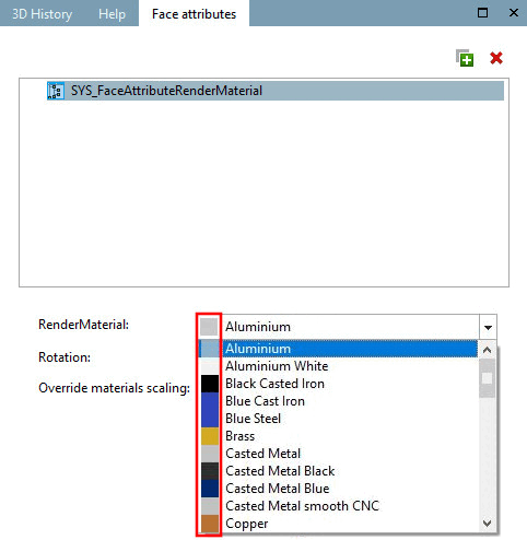 Colors for the materials are now displayed for RenderMaterial under Area attributes [Face attributes].