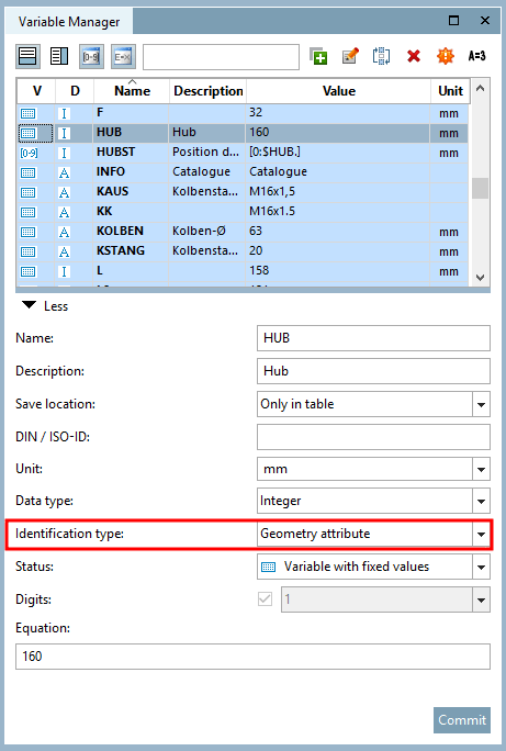 When creating a value range variable in the variable manager [Variable Manager] ( PARTdesigner ), the correct type identification [Identification type] must be selected for this.