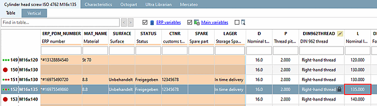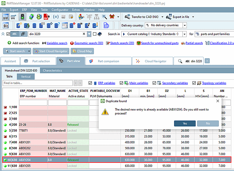 As a result, the created variant is also displayed in the PARTdataManager is displayed.