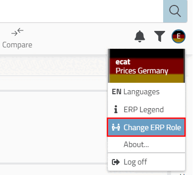 3Dfindit Enterprise: Click on Change ERP role [Change ERP Role] in the login dialog.