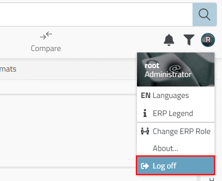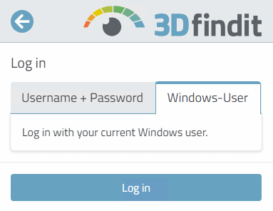 3Dfindit Enterprise: User authentication or user change can be carried out at any time by logging out [Log off].