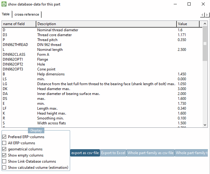 By double-clicking on a line in the PARTlinkManager, the view changes to PARTdataManager.