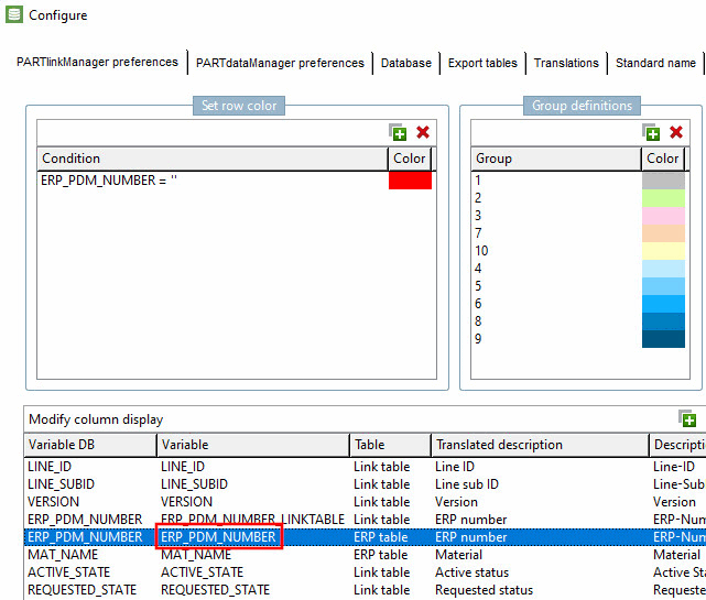 Enter the variable name of the database column here. You can set this in the PARTlinkManager under the menu Extras -> Configure ERP environment.