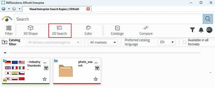Open 3Dfindit and click on the 2D Search [2D search] icon.