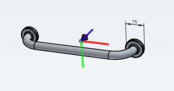 The connection point points to the wall (Z), the Y axis (green) points downwards and the X axis points to the right.