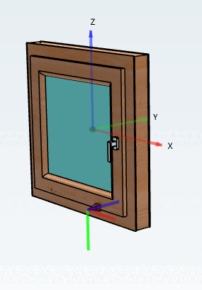 The connection point points to the wall (Z), the Y axis (green) points downwards and the X axis points to the right. This is identical with the door template, but the placement of windows is done at the center reference plane of the wall.