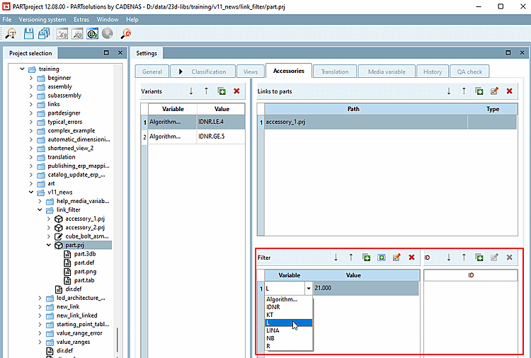 In the Filter dialog area, you can optionally determine whether all rows are displayed in the accessory part or only certain ones when it is opened. If no filter is set, all rows are simply displayed.