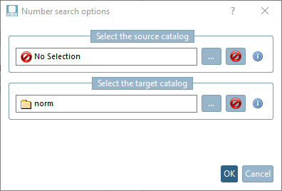 -> The desired source catalog is entered in the Search options numbers [Number search options] dialog box. Confirm here too with .
