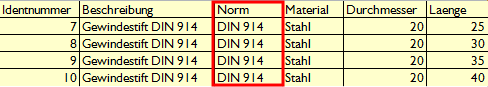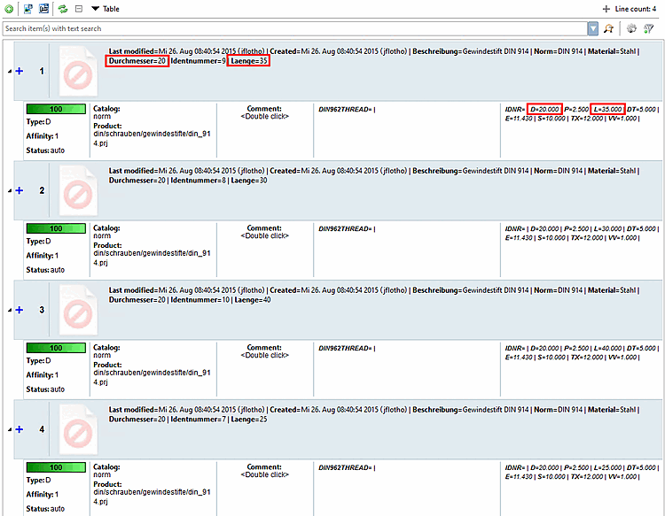 This example uses 4 versions of a DIN 914 (see adjacent CSV file) and is intended to provide an overview of a complete standard process based on the attribute mapping [Attribute mapping] template.[a] |