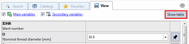 As an alternative to the list view [List view], you can also use the table view [Table view] to specify the variables. To do this, click on the Show table button.