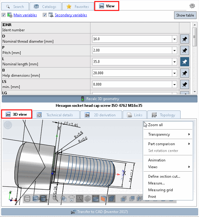 3D view. Depending on the size of the component, this may take a moment. If you want to change several values, you can work more quickly if you use